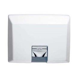 This AirCraft series commercial hand dryer grey iron-casting is finished in high-gloss, acid-resistant, multi-coat vitreous enamel available in white. It is equipped with a two-position, sel