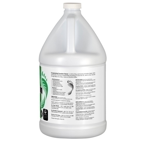 Encapsulating Extraction Cleaner is compatible with high heat equipment. Because it leaves no sticky residue, it will eliminate rapid re-soiling. A concentrated cleaner that can be used with any type of carpet extraction equipment. This encapsulation formula provides one pass cleaning and eliminates the need for rinsing. Dilute 2 oz. to 1 gallon. Diluted for use pH 8.5-9. CRI APPROVED.