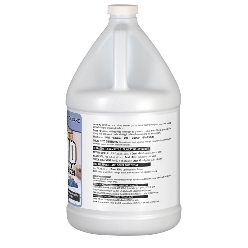 Grout HD penetrates and quickly removes ground in grime from tile, grout lines, and natural stone, leaving behind a bright and revitalized surface. Grout HD utilizes cutting edge technology to provide a product free of harsh chemicals like strong acids and caustic soda, allowing it to be safe on skin and the environment. Effective on Dirt, Grease, Wax, Mildew, and Soap Scum on TERRAZZO, GRANITE, CERAMIC, TRAVERTINE